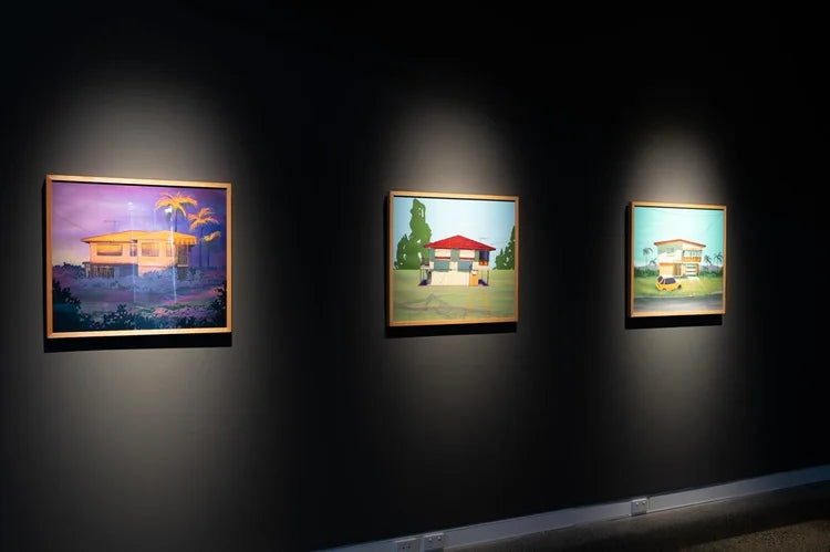 Phoebe Paradise is a multi-disciplinary artist, musician and designer based in Brisbane, Australia; specialising in illustration, murals and public art installations. Phoebe’s practice explores the everyday poetics and visual identity of her hometown through surreal architectural renderings and suburban tableaus that border on speculative science fiction. Oftentimes camp and dripping with nostalgia, Phoebe’s body of work is hyper-niche, yet elicits a universal sense of belonging that has captured the imagination of her broad audience.