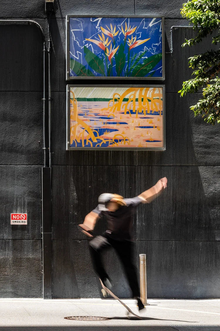 A site-specific commission, the series of 5 works ‘Beautiful One Day, Perfect the Next’ were developed and fabricated for lightboxes installed at Eagle Lane in the Brisbane CBD.