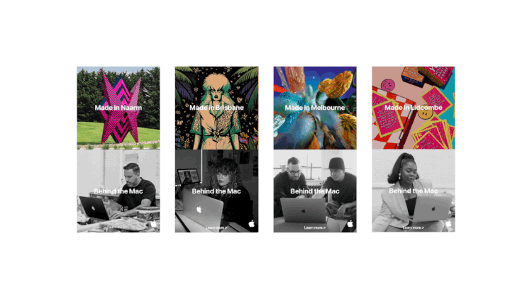 Made in Australia. Behind the Mac was a celebration of the burgeoning Australian creative community. Featuring a range of talent from musicians, filmmakers, illustrators, designers, animators, typographers, dancers and creative technologists, we selected creatives from all over the country. The campaign had a huge cultural impact and was one of Australia’s most positively received campaigns ever created. (via Mike De Tullio)